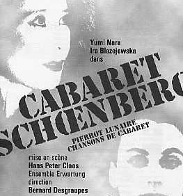 | 06/12-15/02 | "Pierrot Lunaire" "Cabaret songs" | Théâtre de la Tempête, Paris, France | Ensemble Erwartung Direction : Bernard DESGRAUPES Staging : Hans-Peter CLOOS |